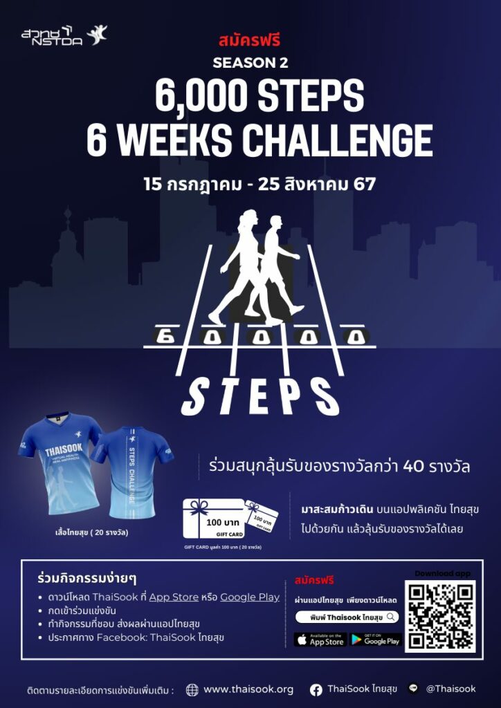 กลับมาอีกครั้งกับกิจกรรม 6,000 steps 6 weeks challenge SS2 เข้ามาร่วมสนุกลุ้นรับรางวัลกว่า 30 รางวัล ง่ายๆ เพียงแค่ก้าวเดิน สะสมก้าว บนแอปพลิเคชัน ไทยสุขก็มีสิทธิ์ลุ้นรับรางวัลได้เลย