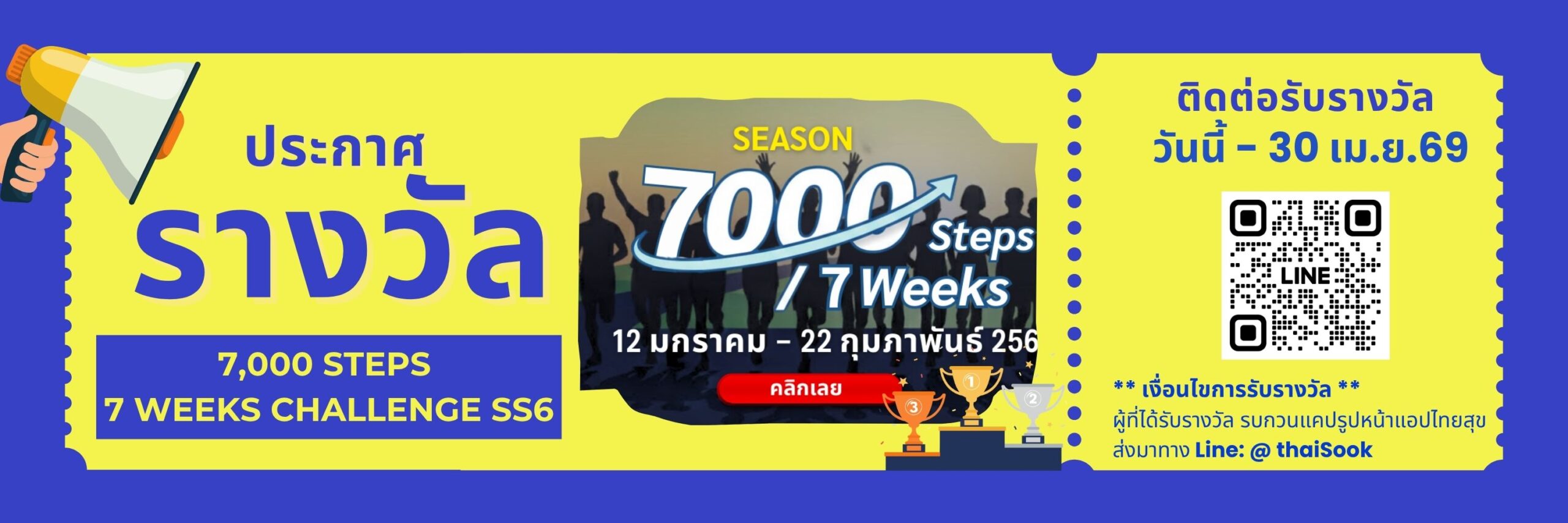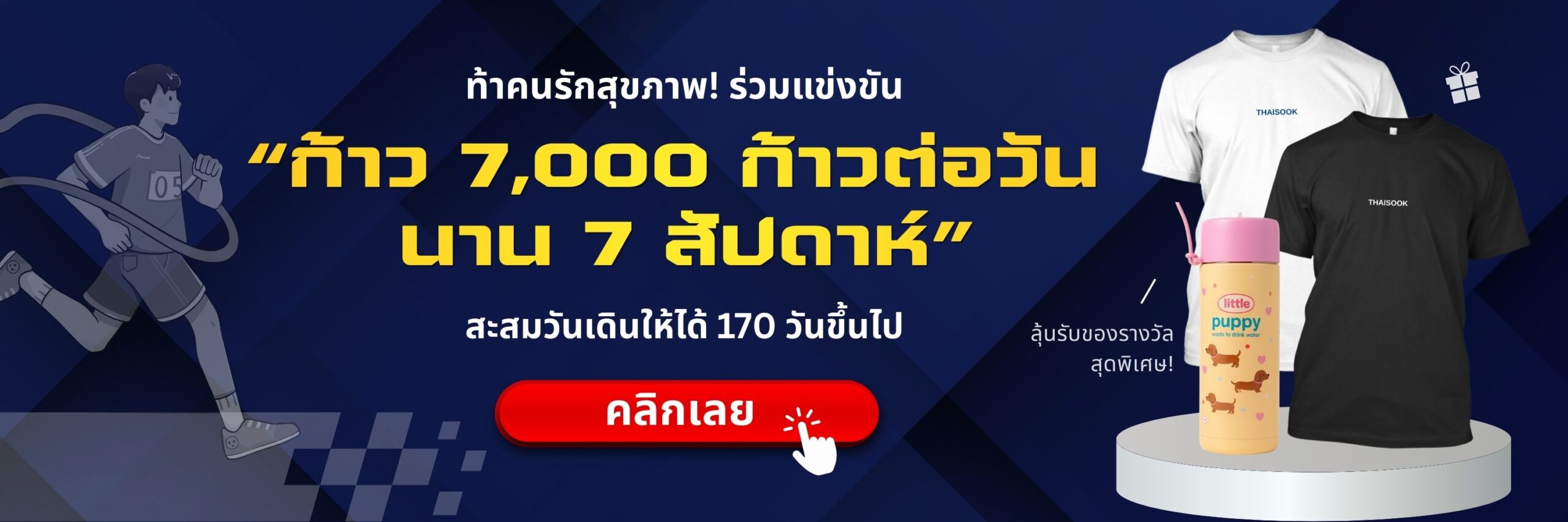 🔥 ท้าพิสูจน์พลังการเดินของคุณ!ร่วมแข่งขัน “ก้าวเดิน 7,000 ก้าวต่อวัน 7 สัปดาห์” สะสมให้ได้ 40 วันขึ้นไป 🎁 ลุ้นรับของรางวัลสุดพิเศษ ได้แก่ เดินทุกวัน ได้ทั้งสุขภาพดี และลุ้นของรางวัลไปพร้อมกัน!🚶♀️ ใครจะเป็นสายเดินตัวจริง ห้ามพลาด! วิธีเข้าร่วมแข่งขัน 1. ดาวน์โหลดแอปพลิเคชันไทยสุข จาก App Store หรือ Google Play 2. กดเข้าร่วมแข่งขัน : Challenge > ทั่วไป > แข่งขัน “ก้าว 7,000 ก้าวต่อวัน 7 สัปดาห์” 3. สะสมก้าวเดินให้ครบ 7,000 ก้าว